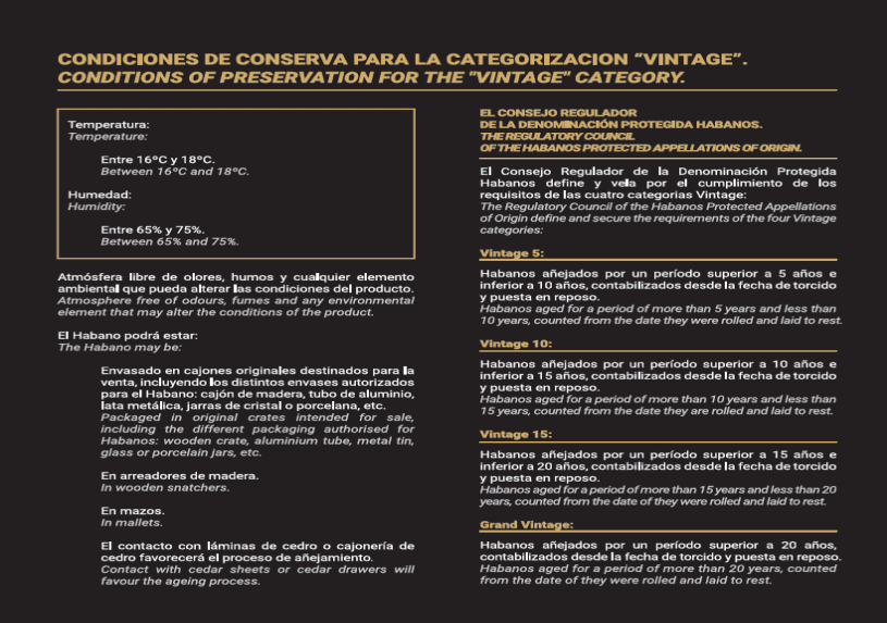 Den första produktionen av Habanos Vintage koncept En kategori skapad tillsammans medHabanos tillsynsråd Skyddad ursprungsbeteckning (PDO). Alla cigarrer lagras på Kuba mer än 10 år och certifierad av Habanos DOP. Produkterna i denna exklusiva serie kommer att skickas monterad från Habanos S.A.