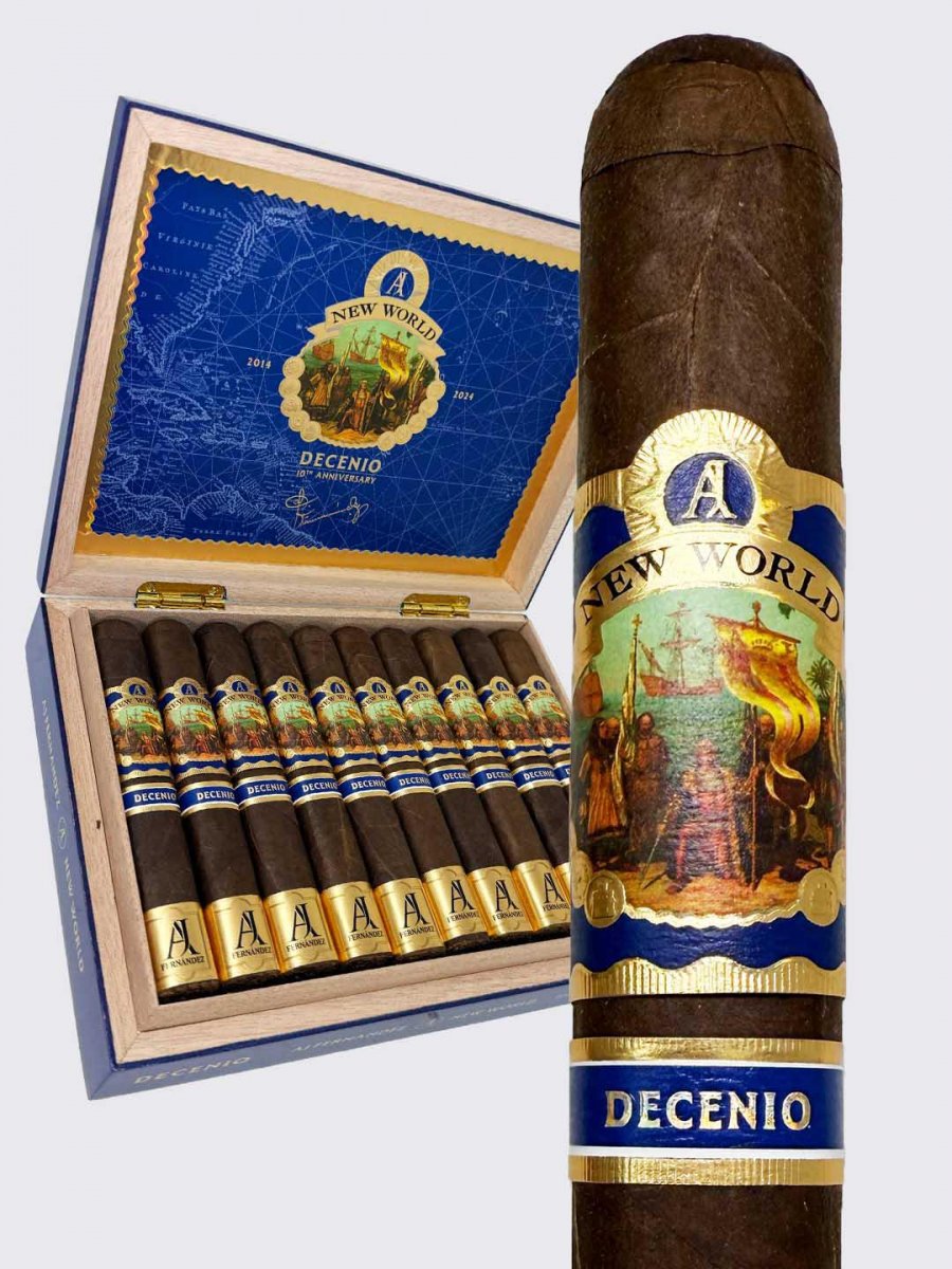 AJ Fernandez New World Decenio Toro firar tioårsjubileet 2014-2024 av den ikoniska New World-serien med en mästerlig blandning. Denna medium- till fylliga cigarr kombinerar ett mexikanskt täckblad, ett nikaraganskt omblad och en mix av filler från Nicaragua och Honduras för en rik rökupplevelse. Trogen New Worlds arv hedrar denna jubileumsutgåva från AJ Fernandez ett decennium av förstklassigt cigarrhantverk som har vunnit entusiasters hjärtan världen över.
