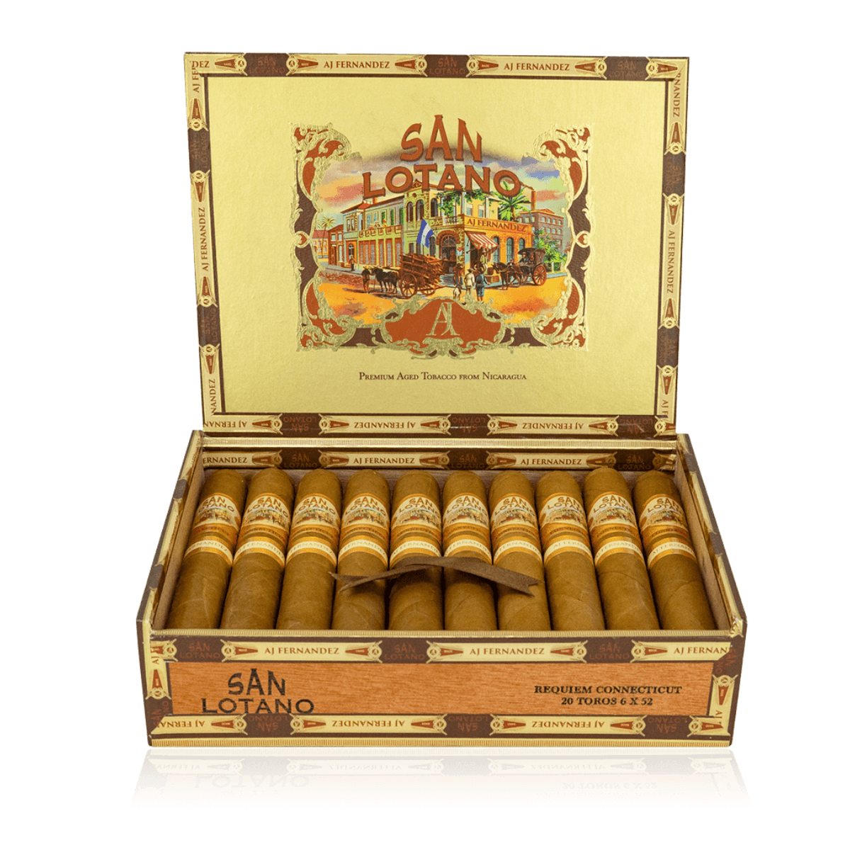 AJ Fernandez, en tredje generationens son, är en av få cigarrmästare som följer den kubanska traditionen av cigarrtillverkning. San Lotano Requiem Connecticut Robusto kommer från en familj med en rik historia i branschen och är en vink till hans förfäder. Varje San Lotano premiumcigarr är gjord efter hans farfars ursprungliga kubanska recept och handrullas på Tabacalera Fernandez-fabriken i Esteli, Nicaragua, med stolthet och respekt.